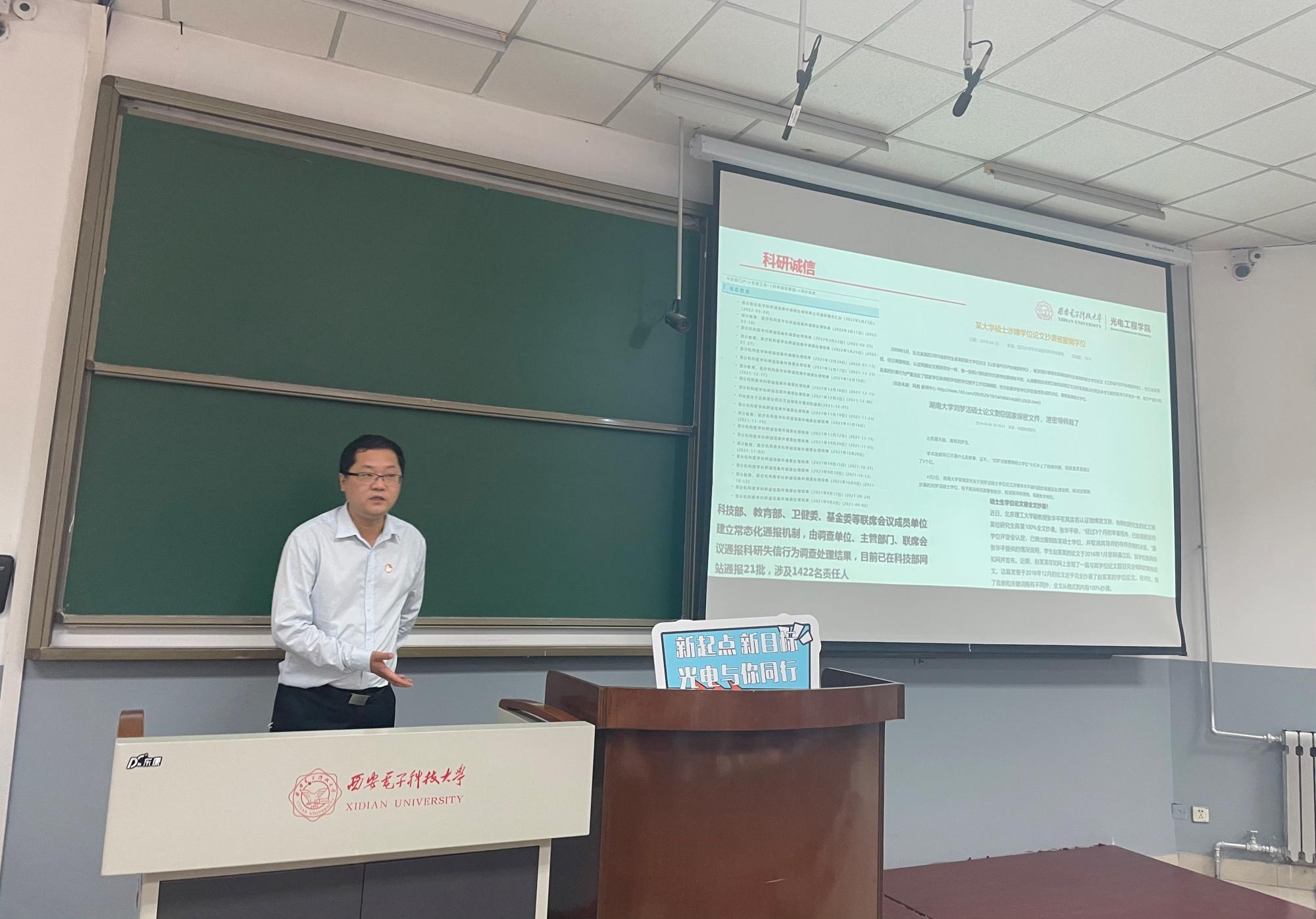 秦翰林教授对科研诚信、保密教育、实验室安全等相关制度、要求进行了说明,提醒同学们杜绝学术不端、遵守保密规定、自觉维护实验室安全。22级新生代表赵子涵回顾与公司共同成长的四年,他表示,作为新时代西电人,同学们要走出舒适区,以“务实”的态度去尝试和摸索,与祖国同命运、与西电共成长。