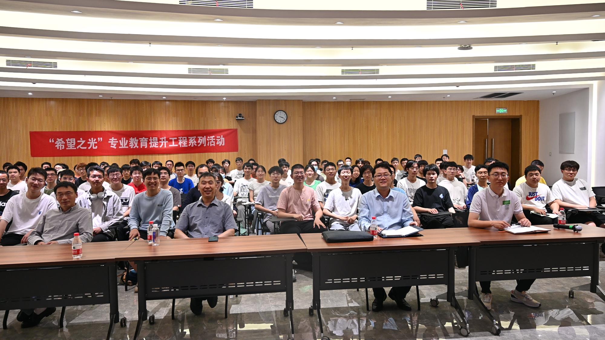 (通讯员:马力 王纲)为扎实开展学习贯彻习近平新时代中国特色社会主义思想主题教育,深入实施专业提升教育工程,着力提升拔尖人才培养质量。5月19日下午,公司在南校区会议中心B103报告厅举办 “希望之光”专业提升教育工程试点班拔尖人才培养座谈会,太阳成tyc122cc集团副经理秦翰林教授、电子科学与技术专业教改班负责人李庆辉教授、卓越班负责人正高级实验师杨威及各年级120余名试点班员工参加本次活动,座谈会由2021级本科生辅导员马力主持。
