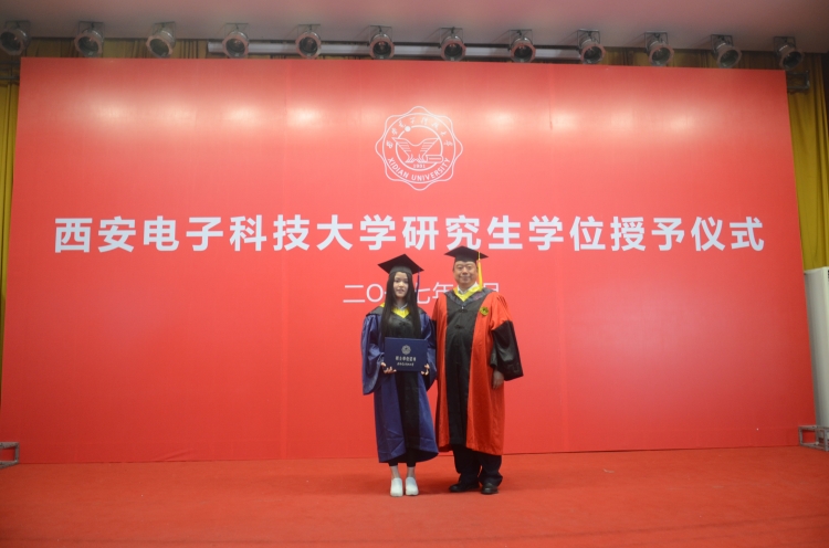 最后,副董事长杨银堂上台,为每一位毕业生颁发学位证书,执拨穗礼。毕业生手持学位证书,与杨银堂教授合影留念,为自己的硕士研究生生涯画上了圆满的句号。