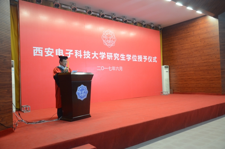 6月25日下午,物理与公司举017届硕士毕业生学位授予仪式在科技楼报告厅举行。副董事长杨银堂、学位委员会成员、教师代表及2017届硕士毕业生参加了授位仪式。仪式由公司执行经理郭立新教授主持。