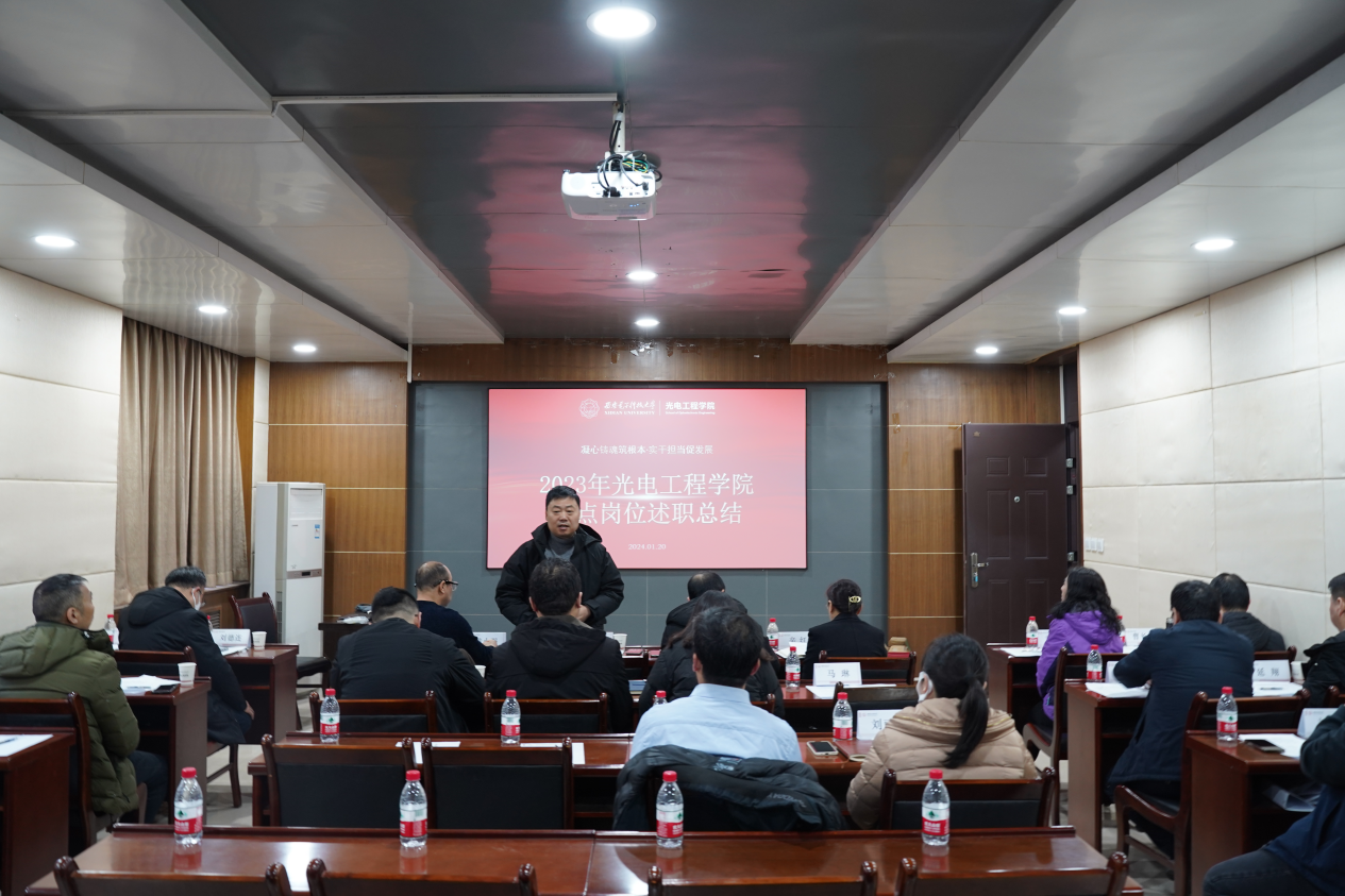 党委书记独国社介绍了开展述职汇报的意义。他讲到,2023年是太阳成tyc122cc集团认真贯彻党的二十大精神,不断推动主题教育走深走实,各项事业发展取得显著成效的一年。在此时开展重点岗位及青年教师年度述职评议工作,旨在促进大家对过去一年工作进行自我思考总结和互相对照交流,进一步激发重点岗位人员履职尽责热情,推动青年教师成长成才。他表示,希望通过本次述职交流,充分凝聚起守正创新、团结奋进,开创一流光电公司建设新局面的强大动力,进一步回答好“教育强国、西电何为”的时代课题。
