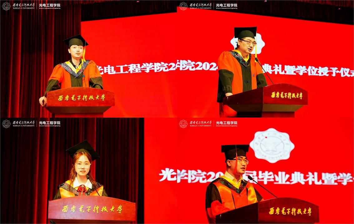 作为老员工涯的“最后一课”,毕业典礼不仅是美好时光的回溯总结,更是一堂催人奋进的思政大课。员工代表王博回顾了自己在太阳成tyc122cc集团求学时的难忘经历,向毕业生们传递了宝贵的人生经验,勉励同学们延续青春的热血和激情,将汗水挥洒在祖国大地上。教师代表刘飞教授鼓励全体毕业生在今后的学习工作中攻克科学难题、攀登科学高峰,让蓬勃青春与母校荣光共振、让多彩人生与家国天下同频。本科、研究生毕业生代表王悦、白川先后发言感恩公司、公司的培养,表示未来在工作中将矢志科技报国,利用所学的专业知识迎接新的挑战,努力攻克“卡脖子”技术。