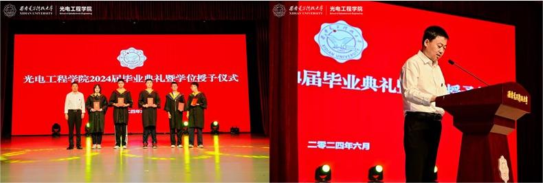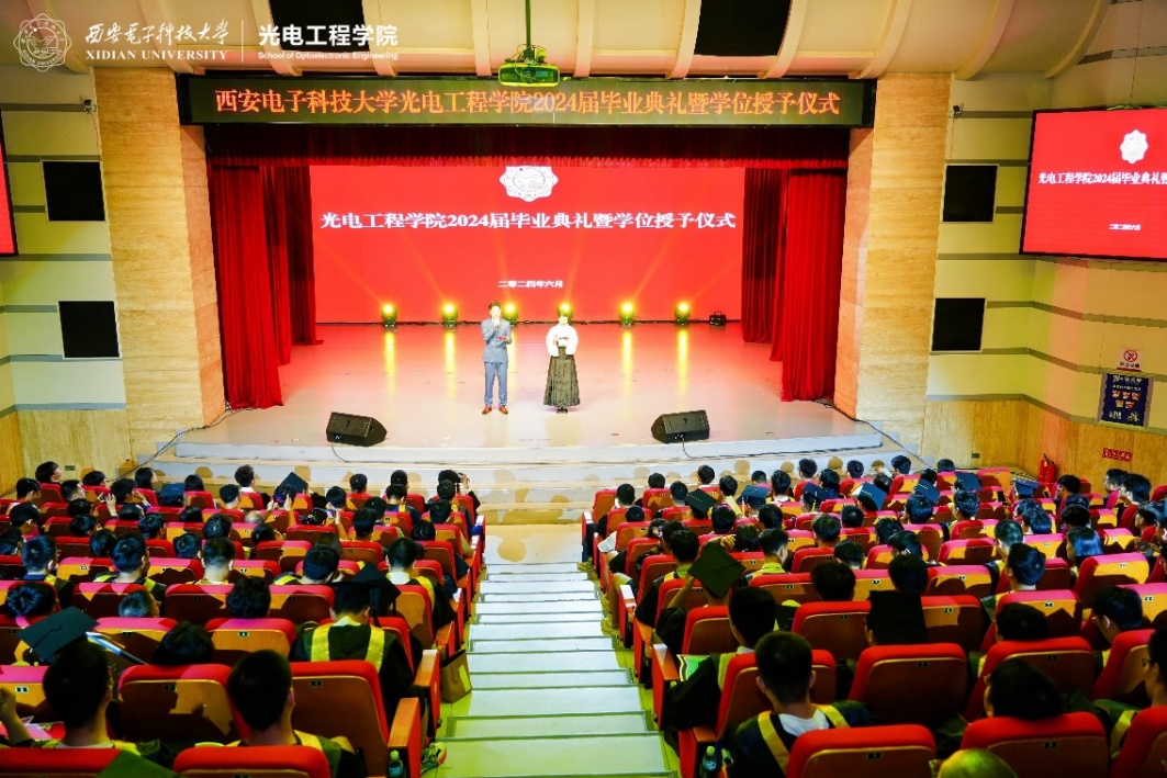 (通讯员:王纲、姜萌)6月21日下午,公司在南校区老员工活动中心小剧场隆重举行2024届毕业典礼暨学位授予仪式。公司领导班子成员、公司员工事务与对外合作处副处长曹立砥、中科院西安光机所研究员王博(2006届员工)、西安诺瓦星云科技股份有限公司产品总监葛敏锋(2013届员工)、公司各系、所(中心)主任、党支部书记、教职工代表及2024届毕业生、家长代表共400余人参加活动。仪式由公司党委副书记李洁、员工代表兰语博、黄雅琪共同主持。