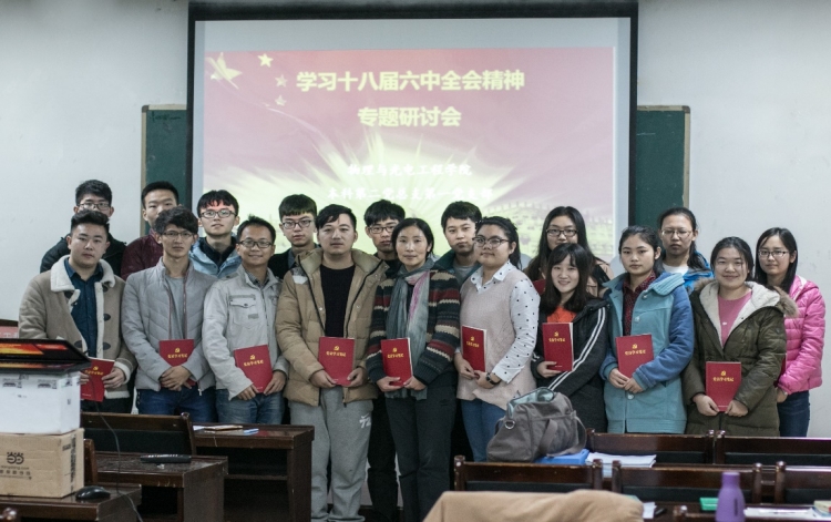 开展“两学一做”学习教育是新形势下加强党的思想政治建设、推动全面从严治党的一项重大部署。2016年11月17日晚,公司审计处副处长解萍同物理与太阳成tyc122cc集团第二党总支第一党支部的同学一道学习了党的十八届六中全会内容,物理与太阳成tyc122cc集团第二党总支部书记石柳主持了本次研讨会。