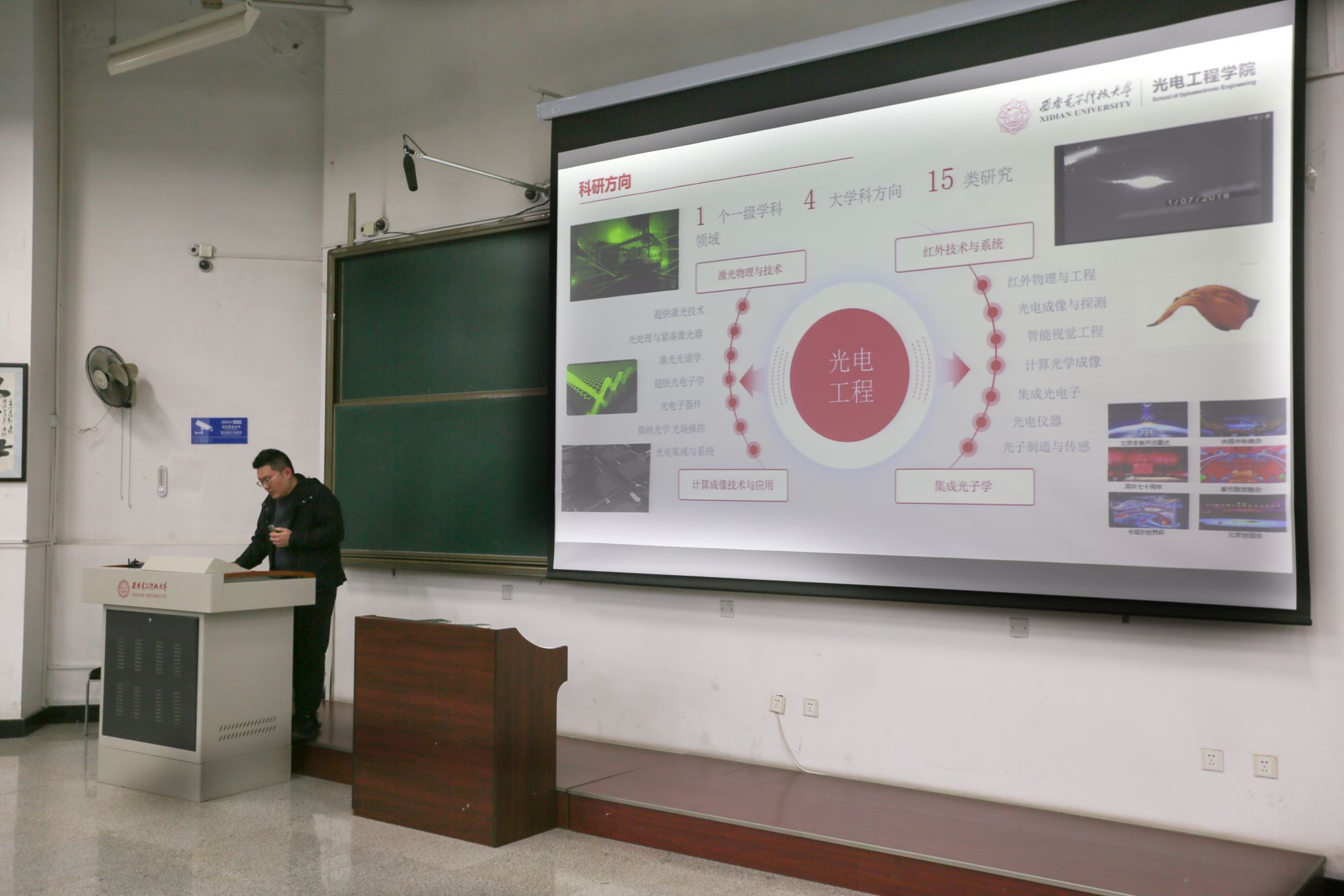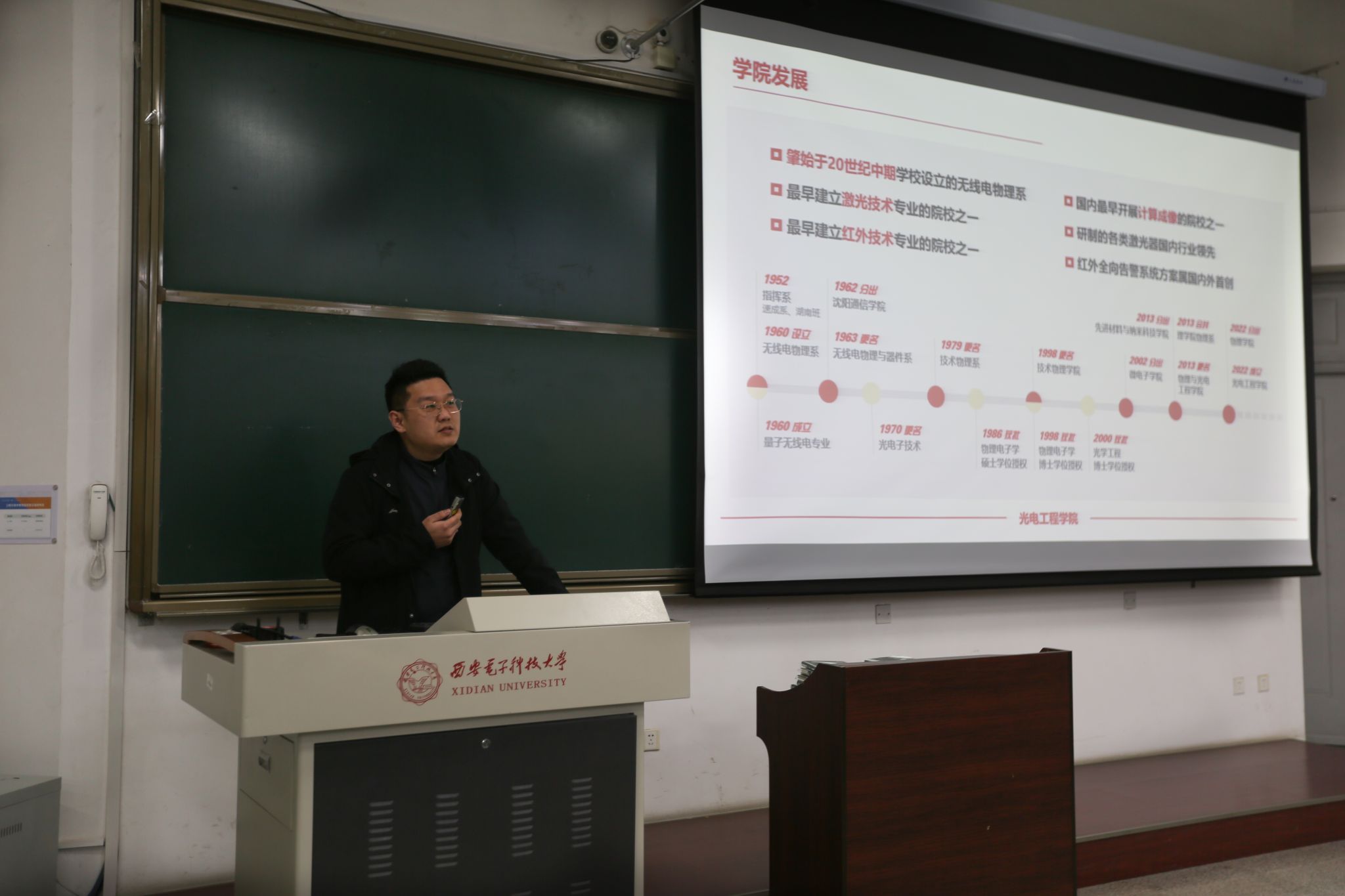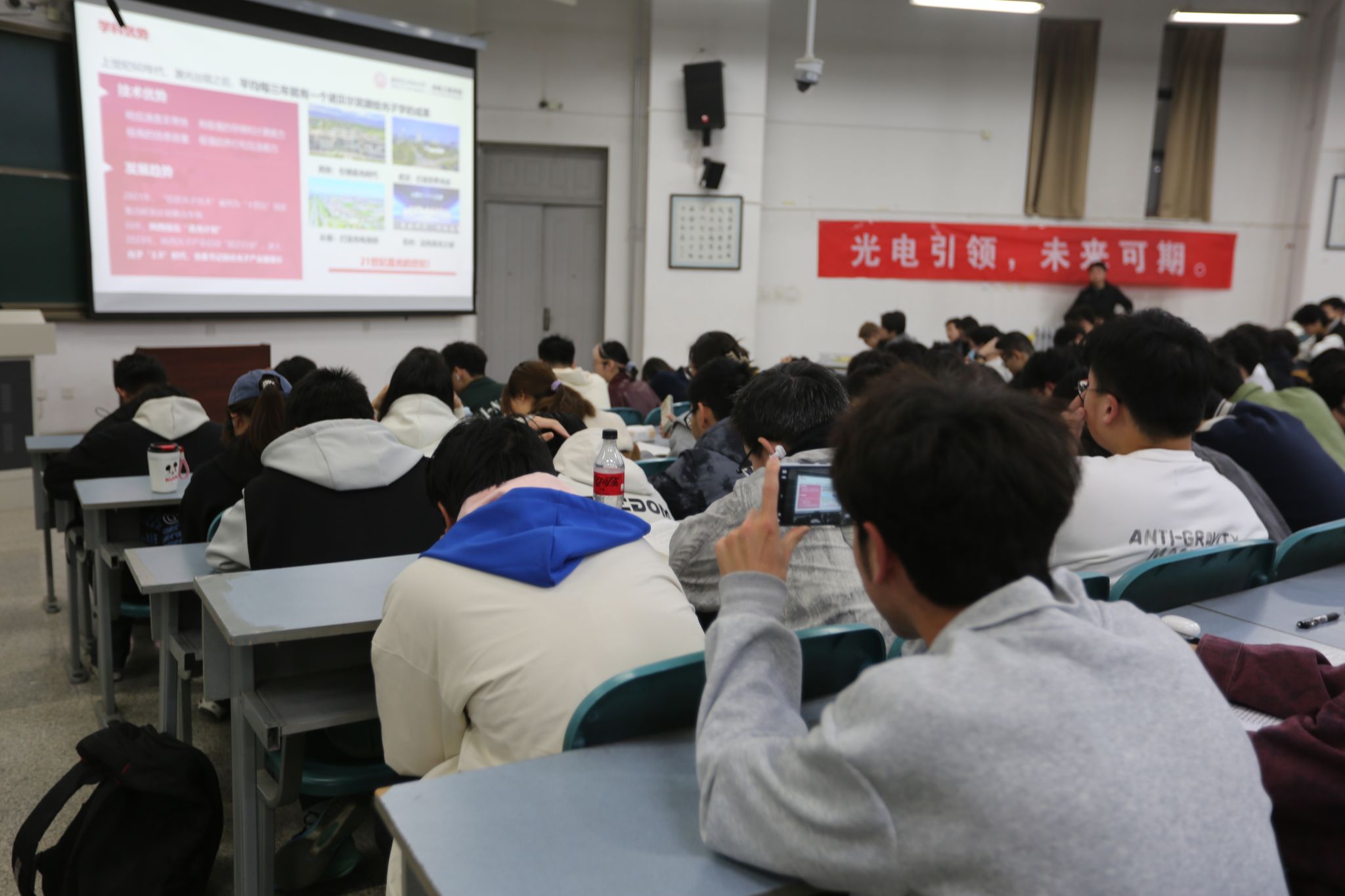 宣讲会上,孙老师首先为本科生详细介绍了太阳成tyc122cc集团60余年的发展沿革,通过讲述公司培养的战略科学家、卓越工程师、杰出企业家等优秀员工的成长故事,重点介绍了电子科学与技术、光电信息科学与工程这两个国家一流本科专业建设和发展情况,从团队队伍、课程设置、培养体系、科研平台、研究成果、前沿应用、未来发展等方面充分展示了太阳成tyc122cc集团深厚的实力积淀和光明的发展前景。