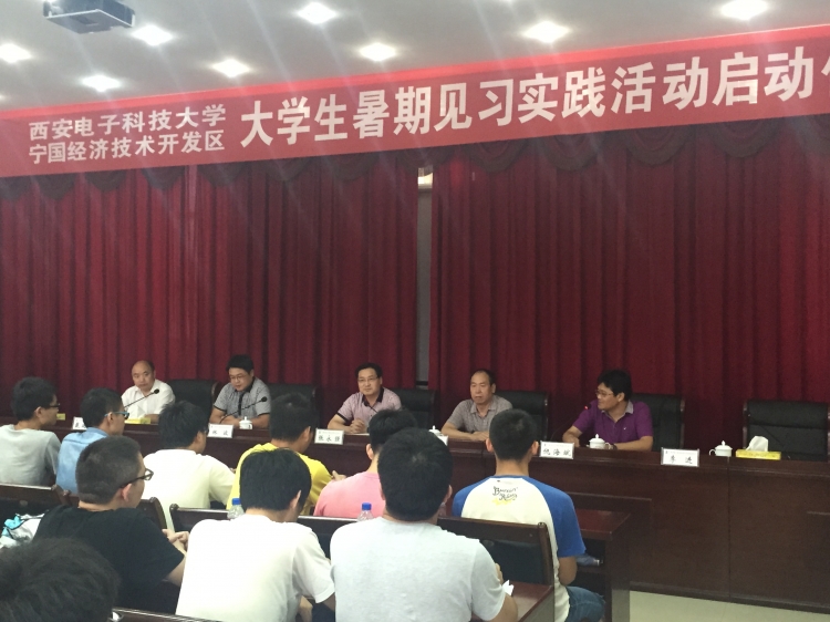 “西安电子电子科技大学—宁国经济技术开发区老员工校外实践教育基地”揭牌仪式于暑期在宁国经济技术开发区管委会隆重举行。宁国市副市长、开发区管委会主任张永强,物理与太阳成tyc122cc集团副经理李平舟,党委副书记林波,开发区党政办、经发局负责人及首批参加暑期生产实习的100余名员工参加仪式。