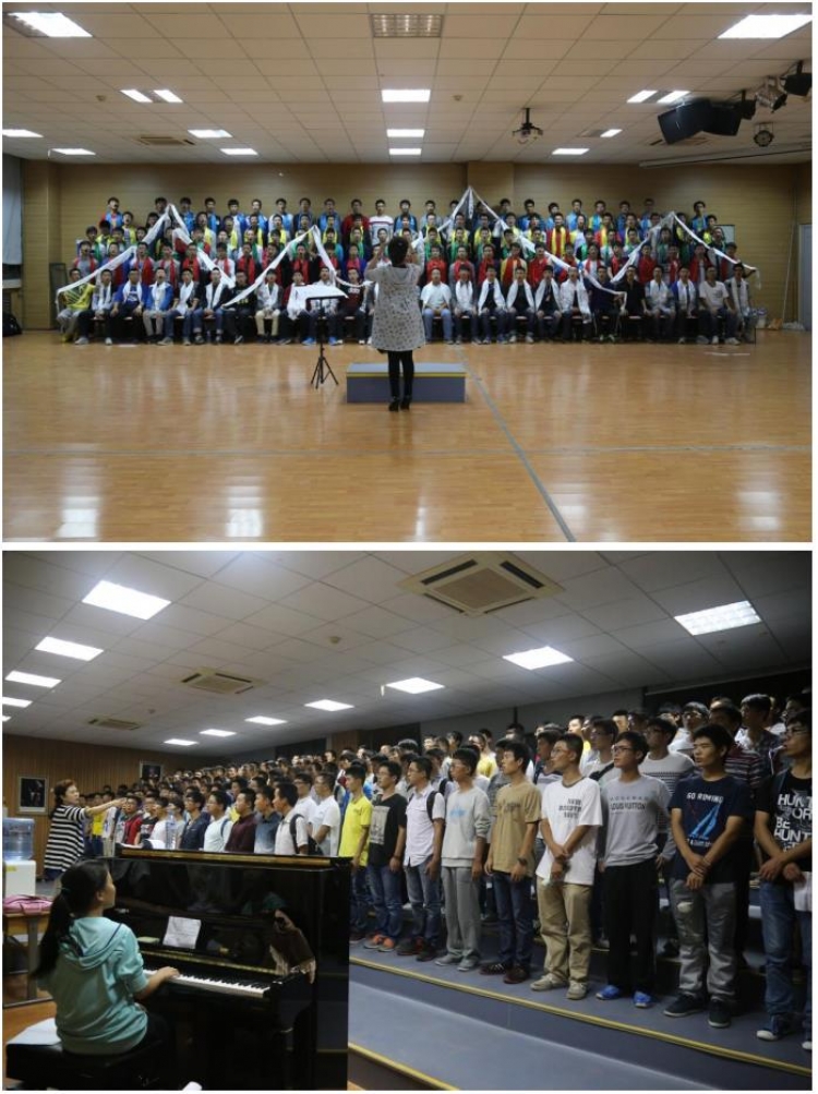 台上十分钟,台下十年功,出色的表演离不开同学们长期艰苦的训练。在合唱筹备期间,同学们积极利用课余时间进行排练,从选择曲目、编排队形、练习合唱到最后的登台演出,各位老师同学们以及员工会工作人员们都积极参与筹划,在此对他们表示衷心的感谢。