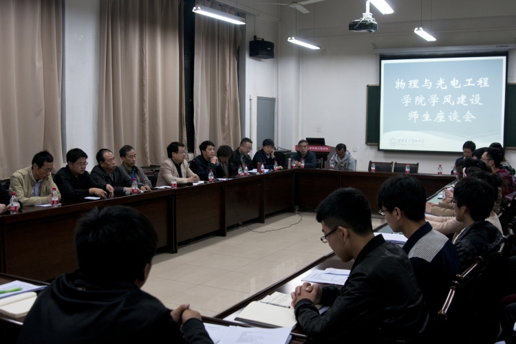 为落实本科生质量提升计划,促进员工全面发展和个性化培养,4月27日晚七点半,物理与公司在E楼学术报告厅召开了学风建设师生座谈会,公司全体领导班子、各专业负责人、各班员工代表参与了此次座谈会。会议由公司党委副书记林波主持。