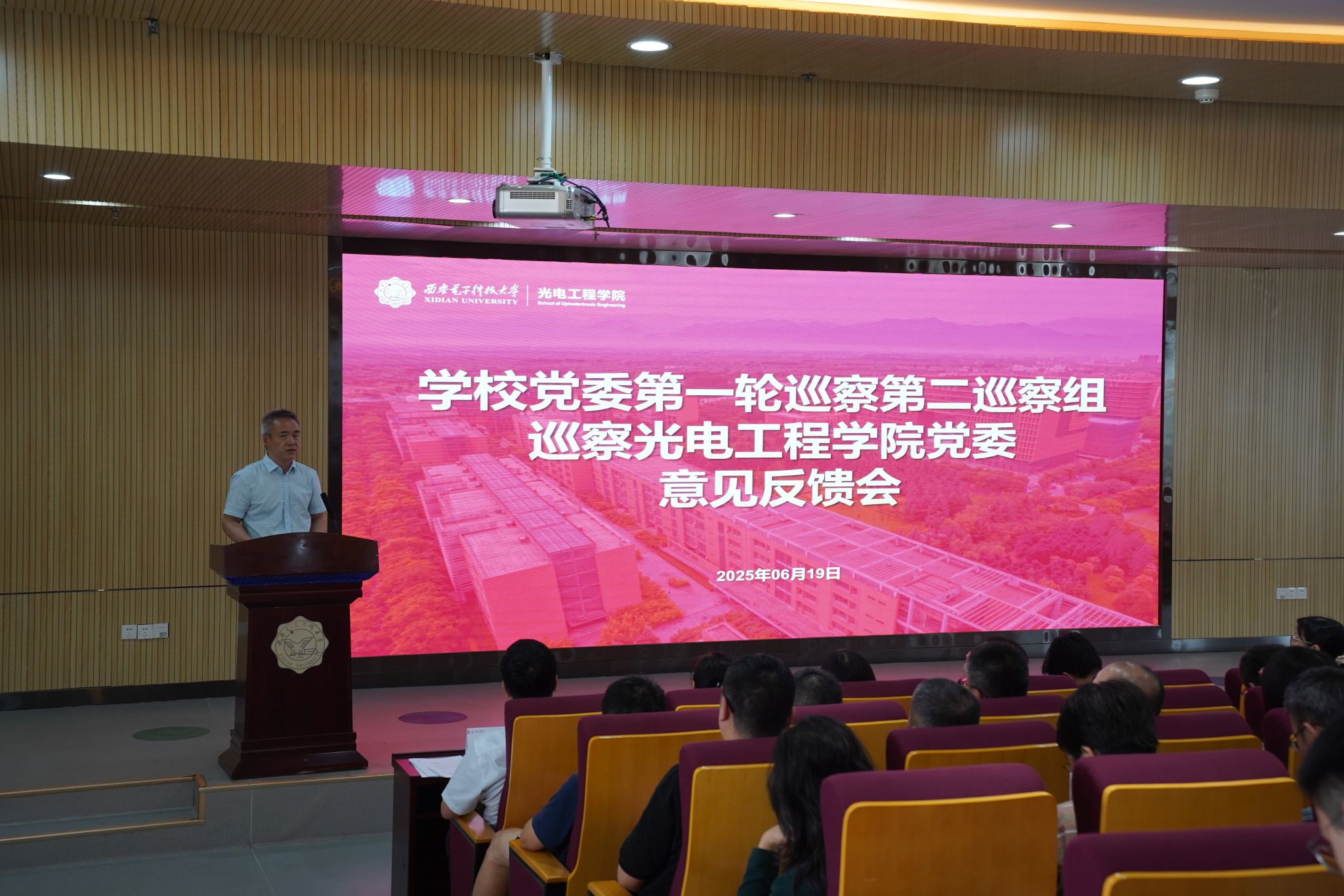 (通讯员:李维嘉)根据公司党委统一安排部署,6月19日,2025年公司党委第一轮巡察第二巡察组巡察光电工程公司党委意见反馈会在北校区图书馆西裙楼三楼召开。公司党委副书记、纪委书记郭俊,巡察办负责同志,巡察组负责同志,公司党政班子成员及师生代表参加了此次会议,会议由公司经理徐淮良主持。