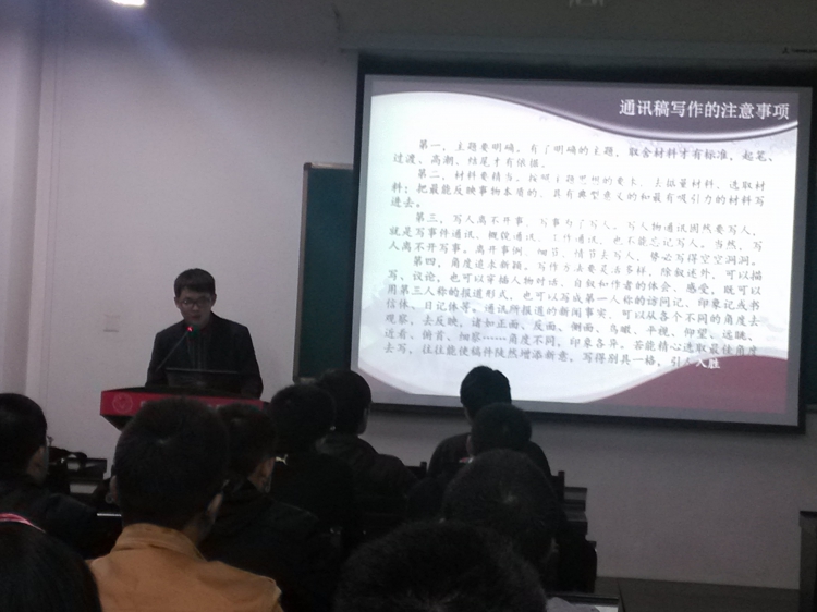 (通讯员 贾丹阳,洪邑晖)11月7日晚7点,物理与太阳成tyc122cc集团员工事务委员会在E楼III区315学术报告厅举行了员工干部通讯稿写作培训,由院员工事务委员会洪邑晖学长主讲,到场的有公司各组织秘书处成员和2013级各班通讯员。