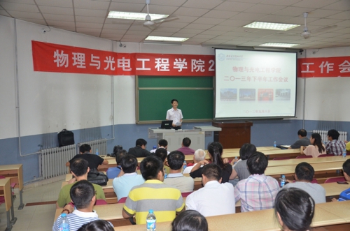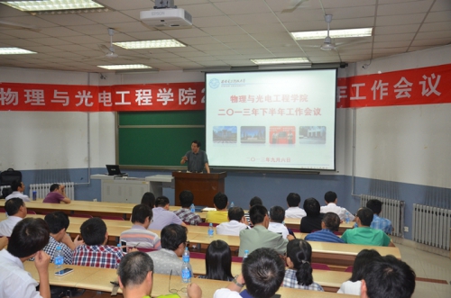 9月6日晚八点,物理与公司在北校区阶教101召开2013年下半年公司工作会议,传达公司2013年下半年工作会议精神,安排部署公司下半年具体工作。公司百余名教师参加了此次会议,副董事长陈勇出席会议并讲话。会议由杨光暐主持。
