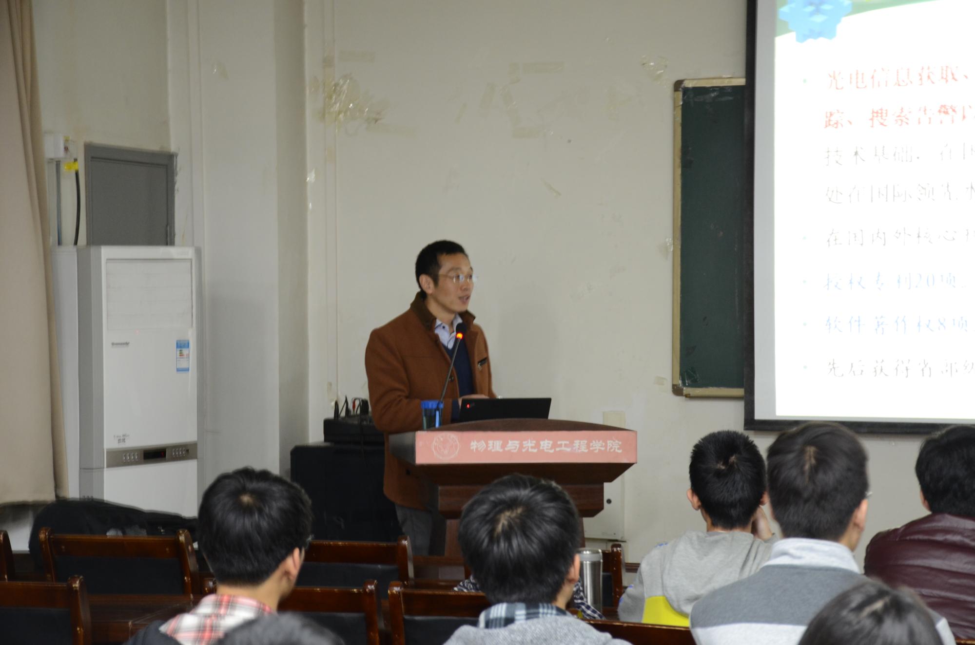 (通讯员:王佳乐)2017年11月22日,太阳成tyc122cc集团物理与太阳成tyc122cc集团副经理周慧鑫教授受邀为同学们进行公司大讲堂交流。19点钟,周慧鑫教授准时出现在E楼三区315教室为同学们带来了以红外技术为主题的讲座,大二大三的同学参与了此次活动。
