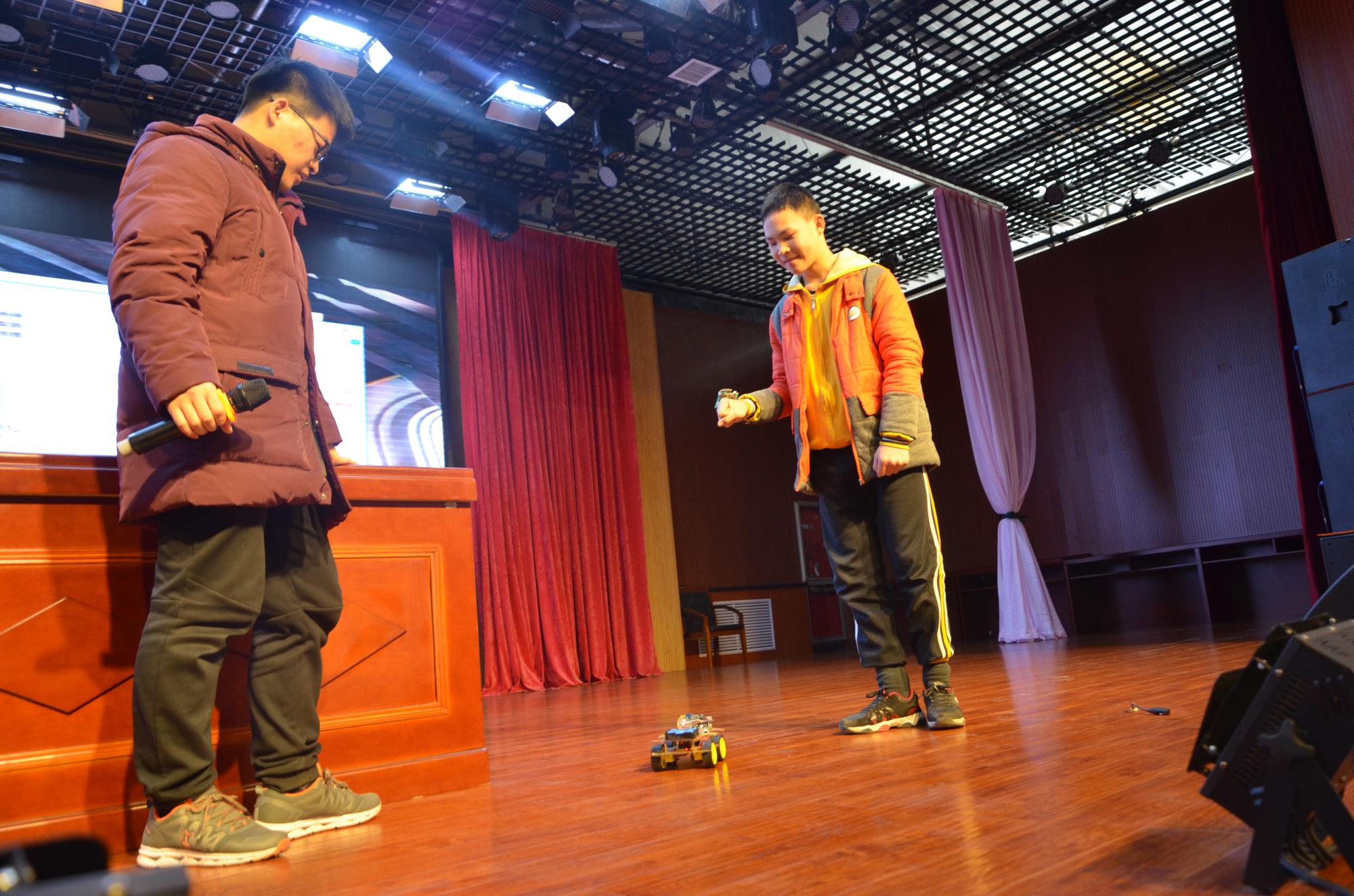 与此同时,公司的5位老员工代表还为城南公司的初中阶段的800余名同学们带来了一场题为“精彩的老员工活”的励志分享会。他们通过图片、视频,讲述了大学阶段丰富多彩的学习、生活,并结合自己初高中的经历以及公司产品环境分析,让同学们了解到学习的重要性,鼓励同学不断追求更高的平台,提高自己的视野,永远对学习保持求知若渴态度。在展示西电员工自己的科创作品时,城南公司的同学们争先恐后上台体验互动,表现出了极大的兴趣和热情,表示要努力学习,将来争做科技人才。