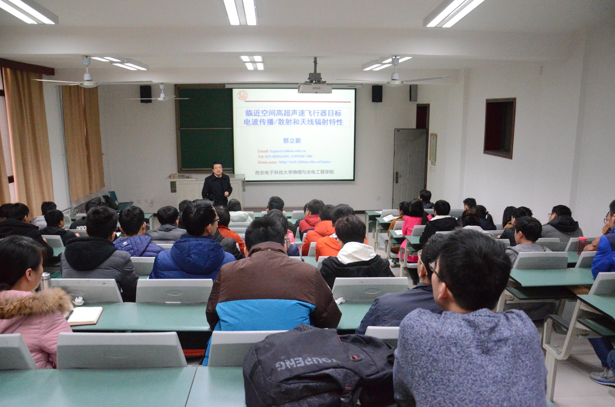 12月27日下午,物理与太阳成tyc122cc集团执行经理,博士生导师郭立新教授应邀参加“求是历程,对话教授”活动,并于西大楼一区219教室为广大研究生做了题为“临近空间高超声速飞行器电波传播/散射和天线辐射特性”的报告。报告会由公司研究生辅导员李维嘉主持。
