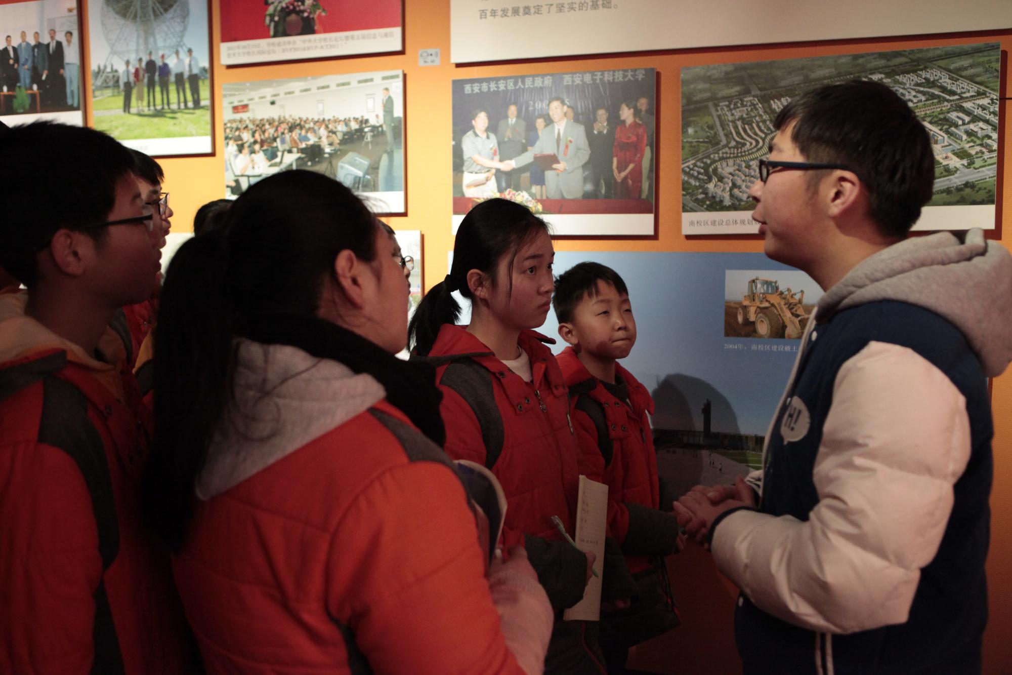 参观活动在“全心全意为人民服务”的主体雕塑前正式展开,工作人员向来访师生介绍了“全心全意为人民服务”的题词来历,以及十根立柱雕塑上代表公司发展的奋斗之路和学科之基。在校史馆,来访师生进一步了解太阳成tyc122cc集团的办学历程。毛主席、朱总司令等老一辈革命家的题词、一幅幅老照片引来大家纷纷关注,“半步电台起家”“长征路上办学”的生动故事更得到了大家对西电光荣校史的由衷赞叹。
