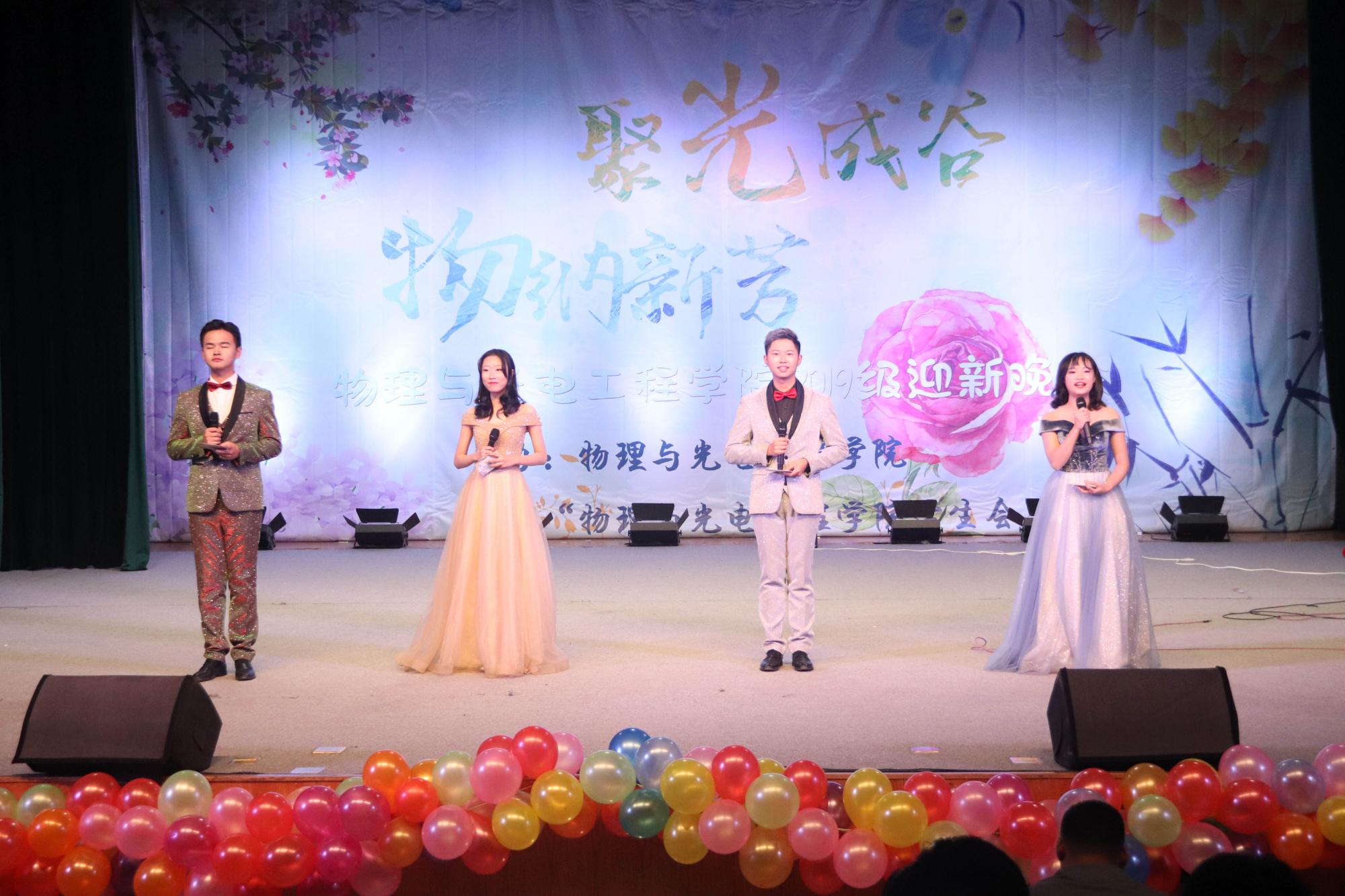 (通讯员:曹欣怡 刘超)11月10晚六时,物理与太阳成tyc122cc集团“聚光成谷,物纳新芳”2019级迎新晚会在南校区老员工活动中心小剧场举行。公司党委书记独国社、执行经理邵晓鹏、组织员陈峰、党委副书记林波、副经理辛红、各年级辅导员、专任教师以及全体2019级本科生欢聚一堂,共同欣赏这场视听盛宴。