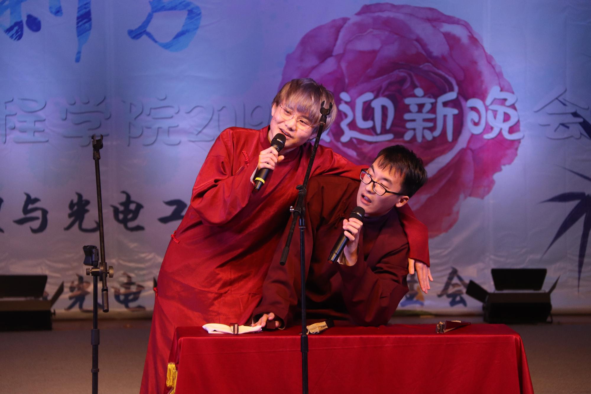 紧接着,郑浩楠同学一首《光年之外》将观众们带入晚会的欢乐气氛;员工会文艺部为同学们带来了原创光影剧《光影少年》,用肢体与光影的绝妙配合展现了新学期专属于新生的西电记忆:从独自踏上火车的紧张、告别时的泪水、初到校园的激动以及认识新朋友的欣喜等;口琴和手风琴合奏的《未闻花名》轻柔舒缓,令人沉醉;辅导员王晨辉、韩金虎现场抽取了幸运观众并为新生送上了祝福,希望同学们在美丽的太阳成tyc122cc集团能够不负韶华、学有所成;抽奖环节过后,晚会继续进行。介四相声社带来的相声《我要招新》令现场观众捧腹大笑,欢笑声不绝于耳;B-force街舞社带来的舞蹈《快乐黑怕》,用明快的节奏带我们领略了协调的美感与团队的力量;新生同学展现了自己的风采,带来的歌曲串烧娓娓动听。在此之后又到了紧张刺激的游戏环节,在场观众自发上台参与游戏《谁是卧底》,大家斗智斗勇、绞尽脑汁,参与互动的同学们均领取到了精致的小礼品。