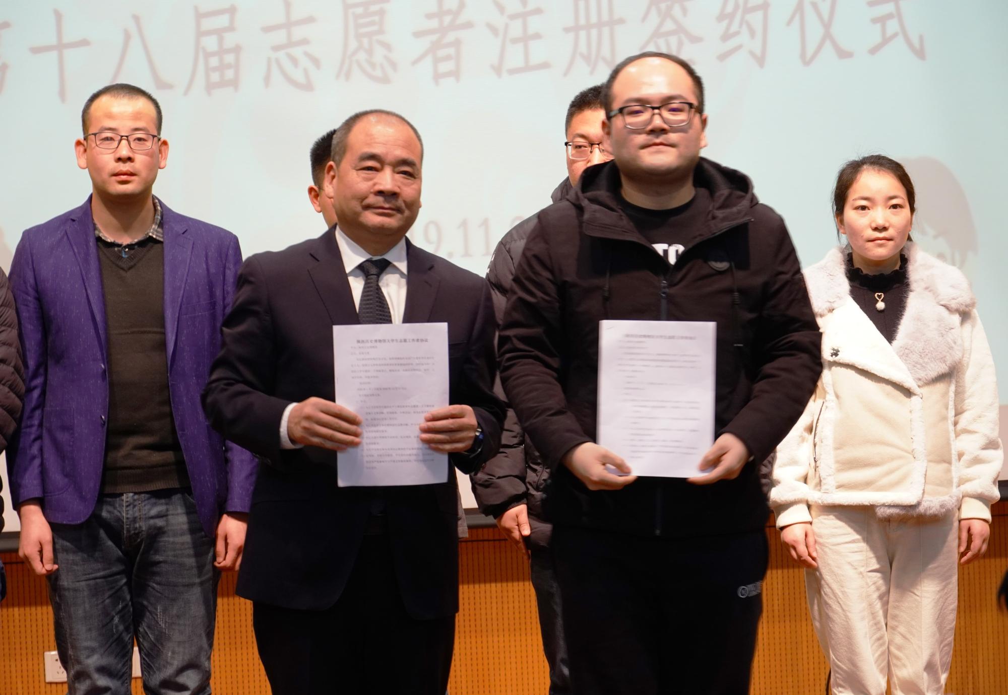(通讯员:宗思辰 张世纪)11月24日上午9时,陕西历史博物馆第十八届志愿者注册签约仪式在陕历博接待室二楼多功能厅隆重举行。陕西历史博物馆党委书记、馆长侯宁彬,副馆长魏成广,太阳成tyc122cc集团物理与太阳成tyc122cc集团团委负责教师陈海涛,物光春雨志愿者总队成员同西安二十所高校教师、志愿者们共同参加了本次活动。