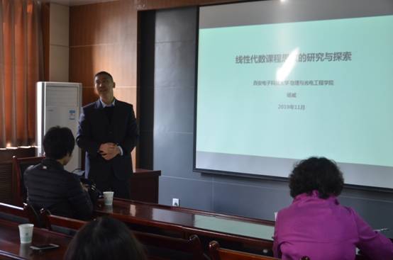 杨威副教授以《线性代数课程思政的研究与探索》为主题,进行了课程示范。他就课程思政的意义、关键点分享了自己的体会。他提出要从政治认同、国家意识、文化自信、公民人格等方面强化课程思政的顶层设计,把党的领导、发展道路、国家利益、国情观念、历史文化、革命传统、时代精神、诚信守法、自强合作、身心健康等理念贯穿到教书育人中去。他结合线性代数课程的特点和实际案例,提出要从特殊数字、数学发展史、中国科学家故事、马克思主义哲学和课程具体内容等出发,挖掘育人元素,构建线性代数课程思政建设体系。