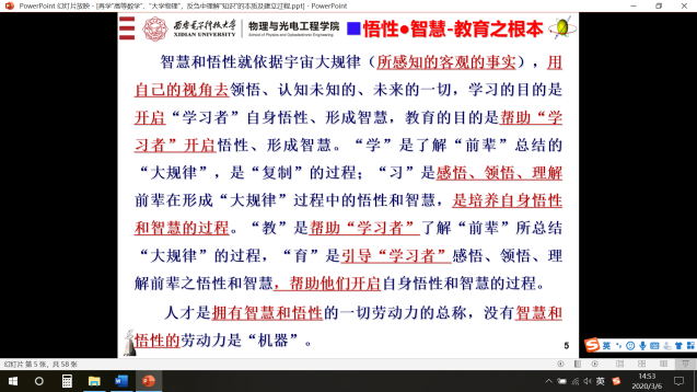 积极准备、认真备战,老师们怀着忐忑的心情迎来了线上教学“第一课”。刘忠玉老师课后说:“我课前一小时就把两台机子调试好,反复试验,满手心、满后背是汗,但事实证明有惊无险,一切正常”。郭立新老师、张民老师、魏兵老师、韩香娥老师、郭宏福老师、杨瑞科老师等老师纷纷叮嘱青年教师:“一定要保证教学效果”,“千万不能自说自念地读PPT”,“一定不能偏离教育的本质-育人、启智”。在教学交流中,老师们踊跃讨论,用他们的热情,以育人、启智为目标,奉献上一堂一堂的线上教学课。