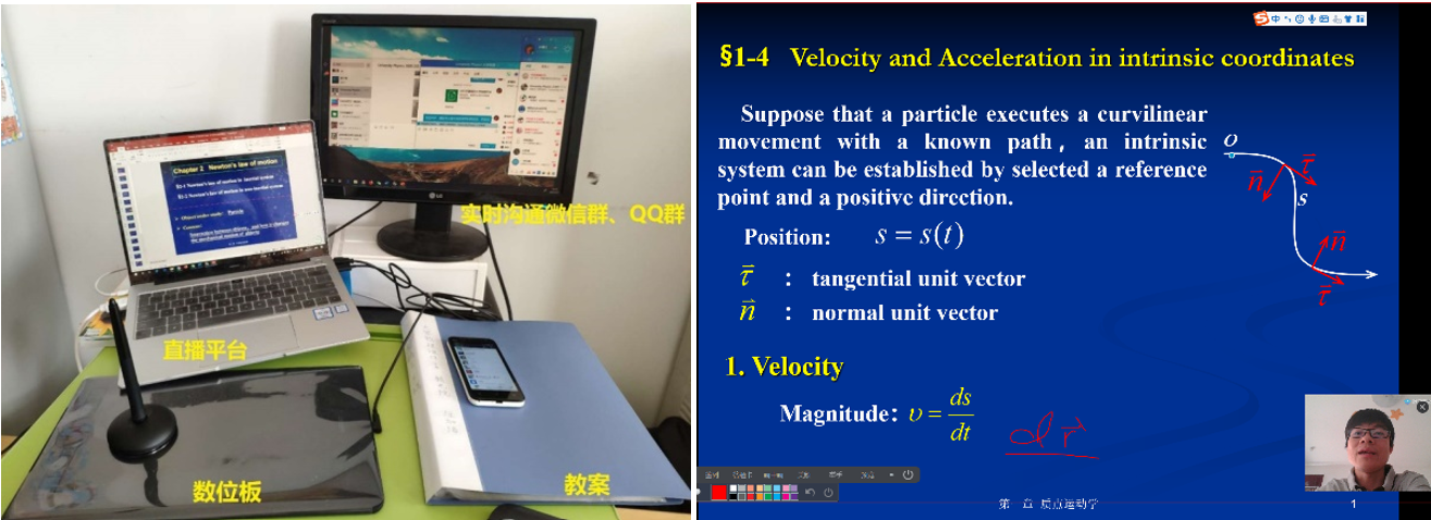 课程组老师为了达到满意的教学效果,结合线上教学的特点,八仙过海,各自寻找适合自己的教学方式和“武器”。王飞老师为了将复杂的推导过程演示清楚,专门购置了高拍仪。唐映德老师为了呈现清晰洪亮的视频音频专门购置了摄像头、耳机等。汪加洁老师还多管齐下,课程学习微信群、QQ群、数位板、双电脑屏幕,并对线上教学总结出一套自己的经验。