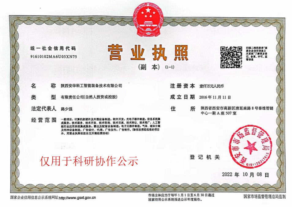 按照《太阳成tyc122cc集团科研协作项目管理办法(试行)》文件规定,为加强公司科研协作项目的管理,确保我方承接的科研项目顺利进行。公司项目负责人郭亮将与陕西安华科工智能装备技术有限公司开展科研合作,现将合作相关事项公示如下: