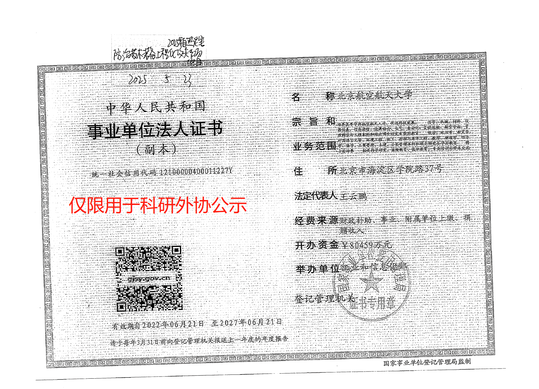 按照《太阳成tyc122cc集团科研协作项目管理办法(试行)》文件规定,为加强公司科研协作项目管理,确保我方承接的某雷达干扰技术研究开发研究项目顺利进行。公司项目负责人郭亮将与北京航空航天大学开展科研合作,现将合作相关事项公示如下: