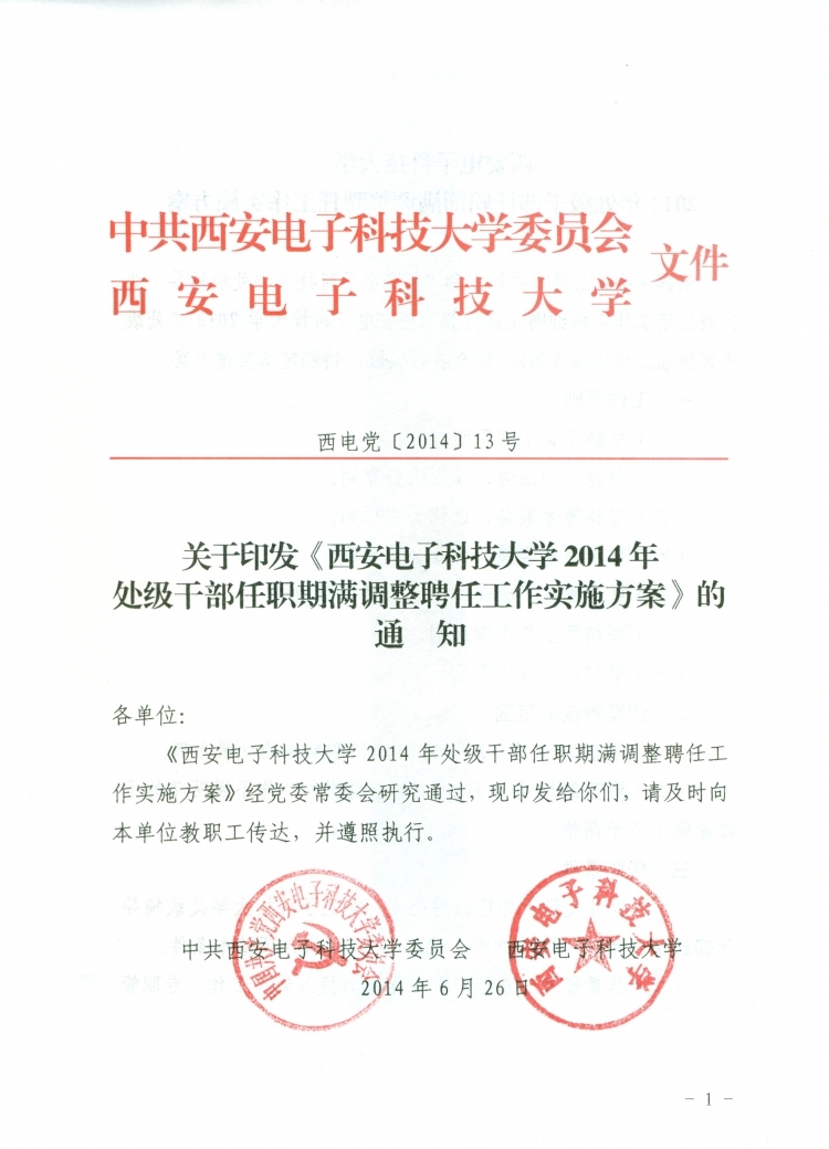 【公司】关于印发《公司举014年处级干部任职期满调整聘任工作实施方案》的通知