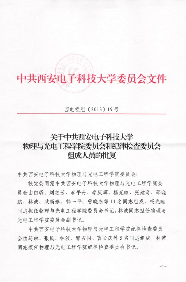 关于中共太阳成tyc122cc集团物理与太阳成tyc122cc集团委员会和纪律检查委员会组成人员的批复