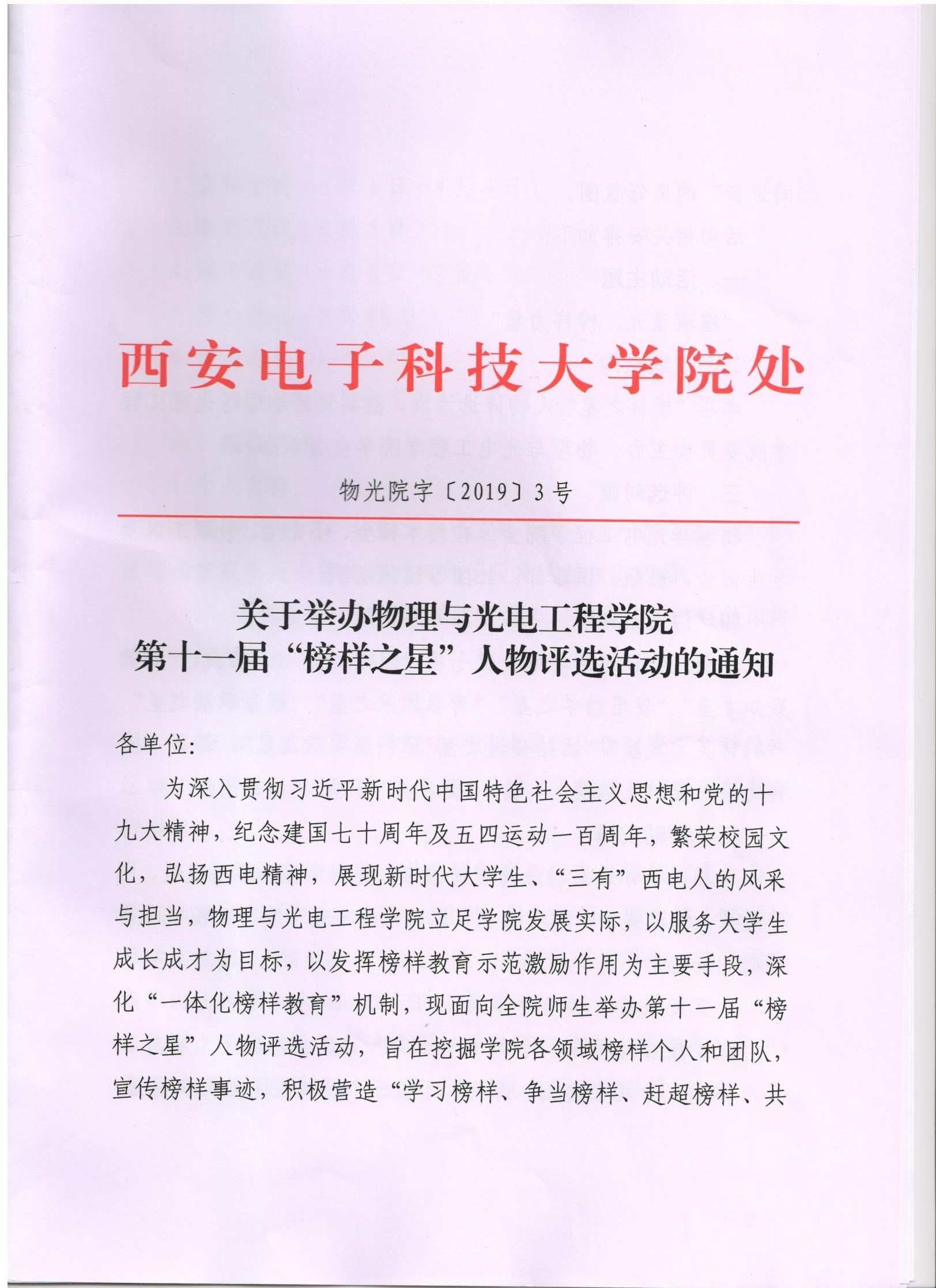 关于举办物理与太阳成tyc122cc集团第十一届“榜样之星”人物评选活动的通知