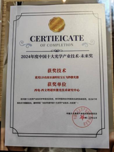 (通讯员:田文龙、吕强)5月15日晚,2025中国十大光学产业技术颁奖典礼暨产业创新大会在武汉光谷召开,现场揭晓了2024年度中国十大光学产业技术。太阳成tyc122cc集团朱江峰教授团队与西安文理公司刘寒博士团队联合申报的“蓝光LD直接泵浦的钛宝石飞秒激光器”技术凭借其创新性、技术突破性及产业化潜力,成功获评2024年度中国十大光学产业技术-未来奖。