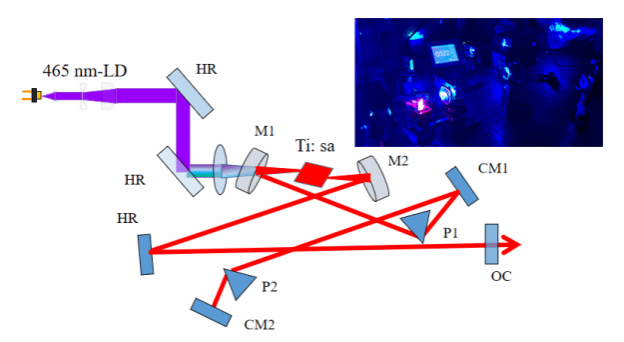 图 蓝光 LD直接泵浦的钛宝石飞秒激光器工程化样机和技术参数