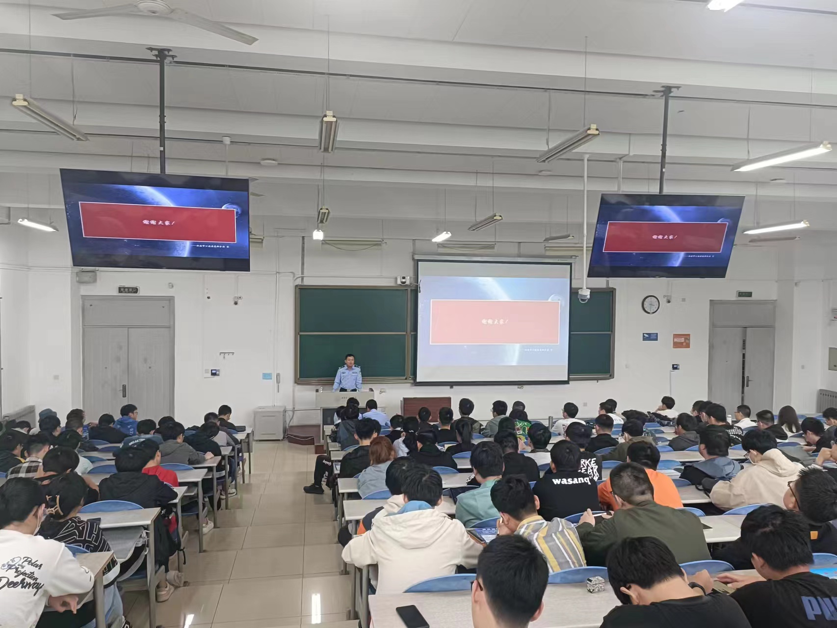 为普及防范电信诈骗知识,增强员工安全意识和风险意识,6月2日下午,公司在B434教室开展反电信诈骗专题讲座,西安市公安局高新分局杨皓宇、潘志勇、黄航三位警官及公司200余名本科生参加本次活动,讲座由2021级本科生辅导员马力主持。