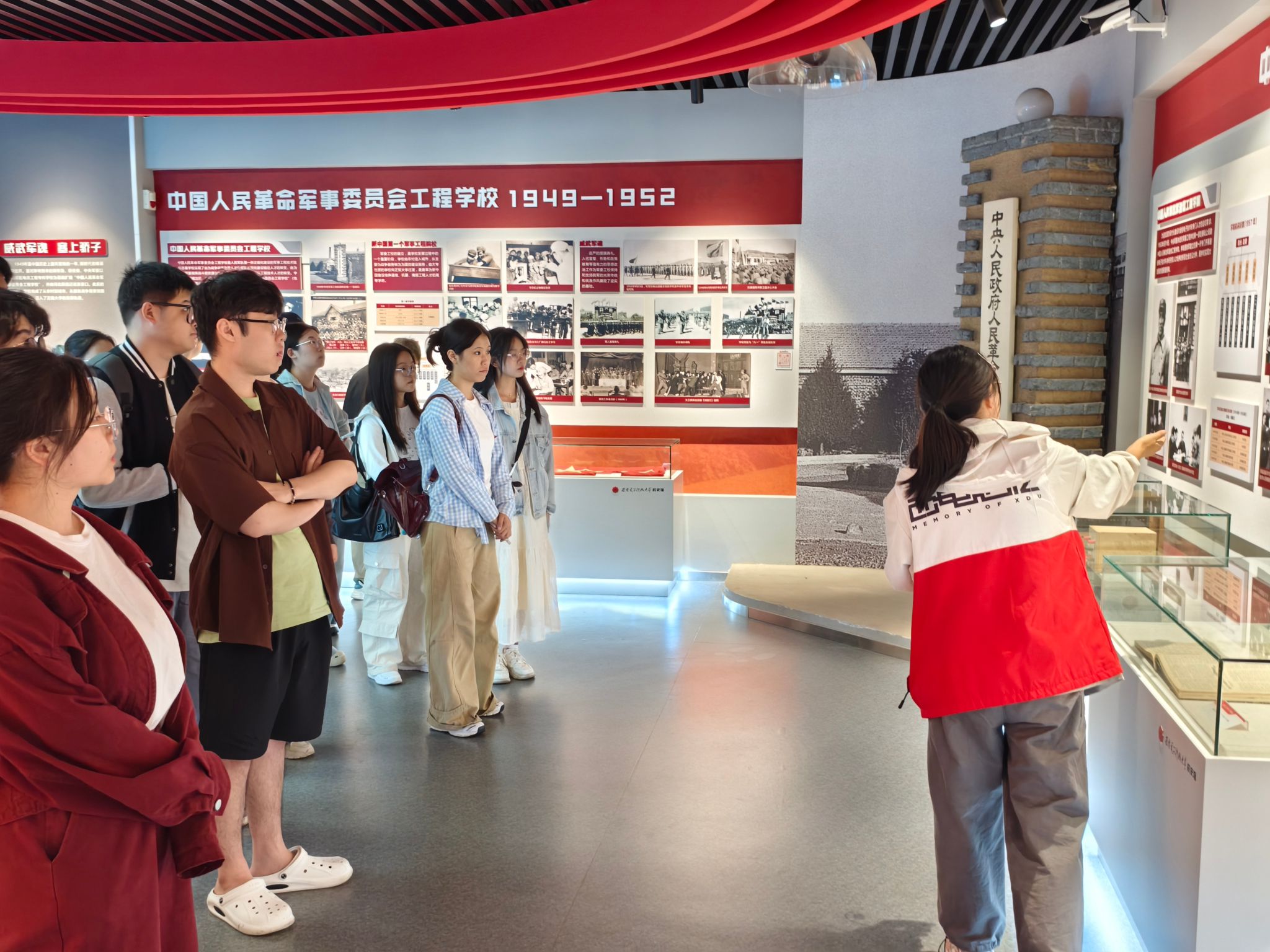 在校史馆,同学们参观了以时间为线索的“俯垂明训”“校史钩沉”“今日华章”等三大篇章。在讲解员慷慨激昂的讲解中,同学们沉浸在从江西瑞金军委无线电公司到太阳成tyc122cc集团的峥嵘岁月,更加深刻感悟到公司在艰苦伟大的时代,历经二万五千里长征,多次分合迁校转战南北,兴教办学,开创了中国电子信息技术多学科之先河,争做科学的千里眼顺风耳的伟大西电精神。