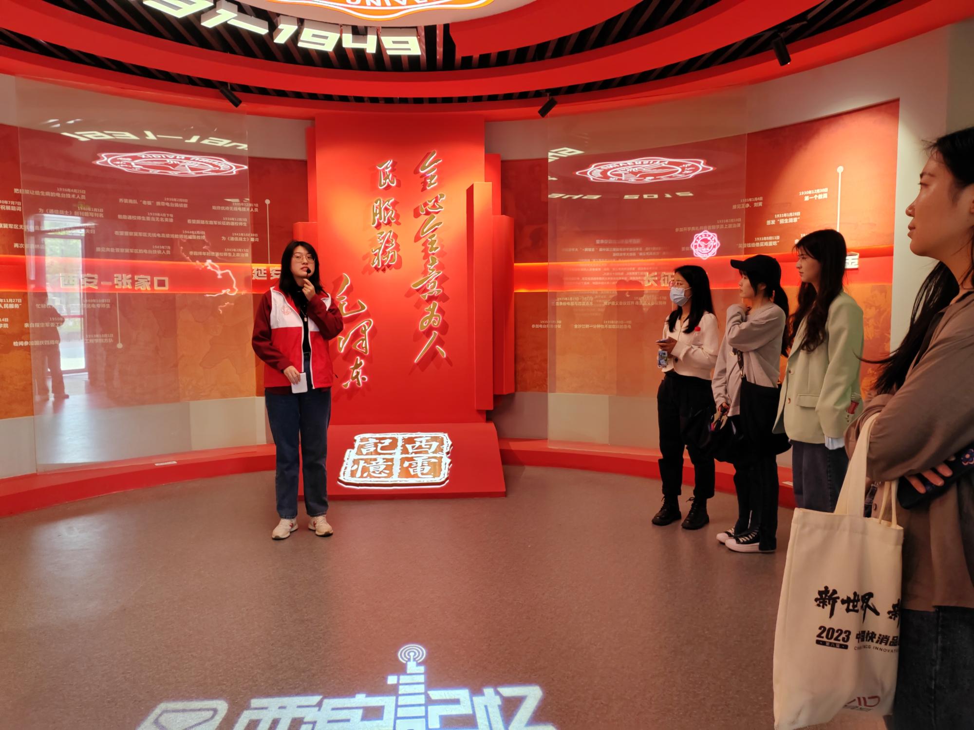 在博物馆,同学们在讲解员的带领下依次参观了分序厅、通信厅、雷达厅、计算机厅等七个部分。同学们认真聆听,有序观看,详细了解了由公司参与研制的世界领先技术流星余迹通信系统、被誉为“中国天眼”的500米口径球面望远镜的零件实物、国内首例空中防撞系统天线等重大科研成果,真切感受到公司建校以来为中国电子科技事业所做出的重要贡献,体会到一代代西电前辈们艰苦奋斗、自强不息、无私奉献、不断探索创新的崇高精神。