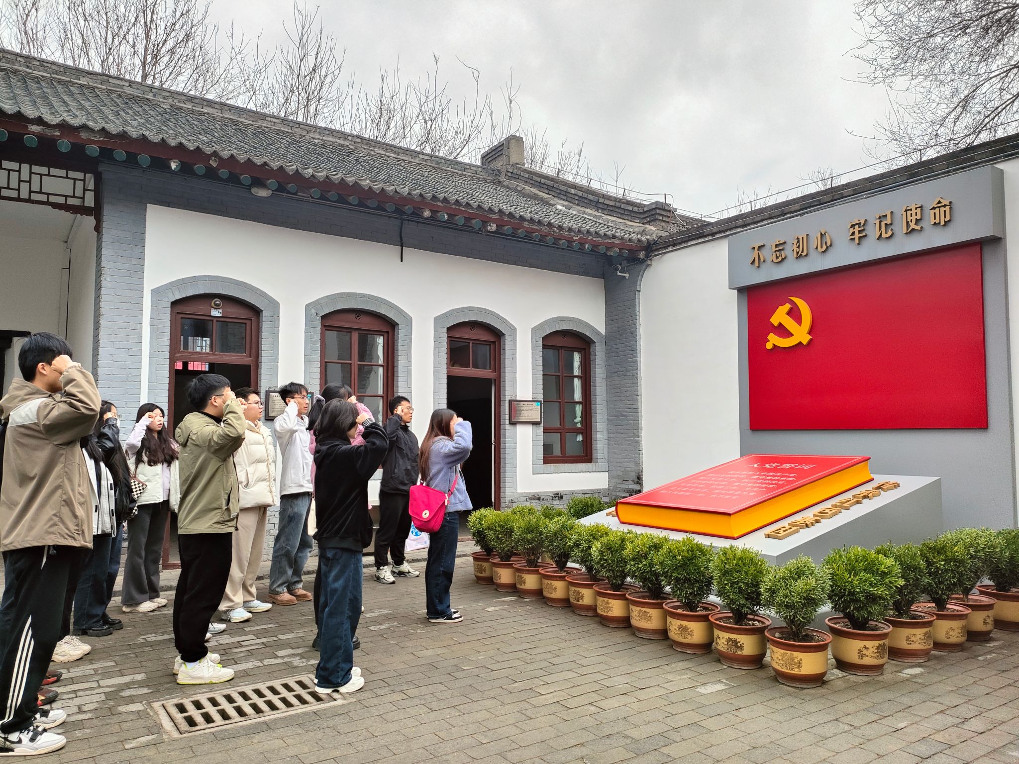 宣讲结束后,公司本科电科第一党支部、硕士24级党支部党员前往八路军西安办事处纪念馆开展实地研学。在讲解员的带领下,同学们依次参观了办事处旧址和历史纪念馆,学习八路军西安办事处的红色历史,共同感受红色文化的浸润和革命文化的荡涤。随处可见的黑白照片、整齐的工作用具、历史厚重的古朴建筑再现了当年八路军在此艰苦奋斗的场景,仿佛将众人带回了那段艰苦卓绝的革命岁月。最后,全体党员在纪念馆广场重温入党誓词。