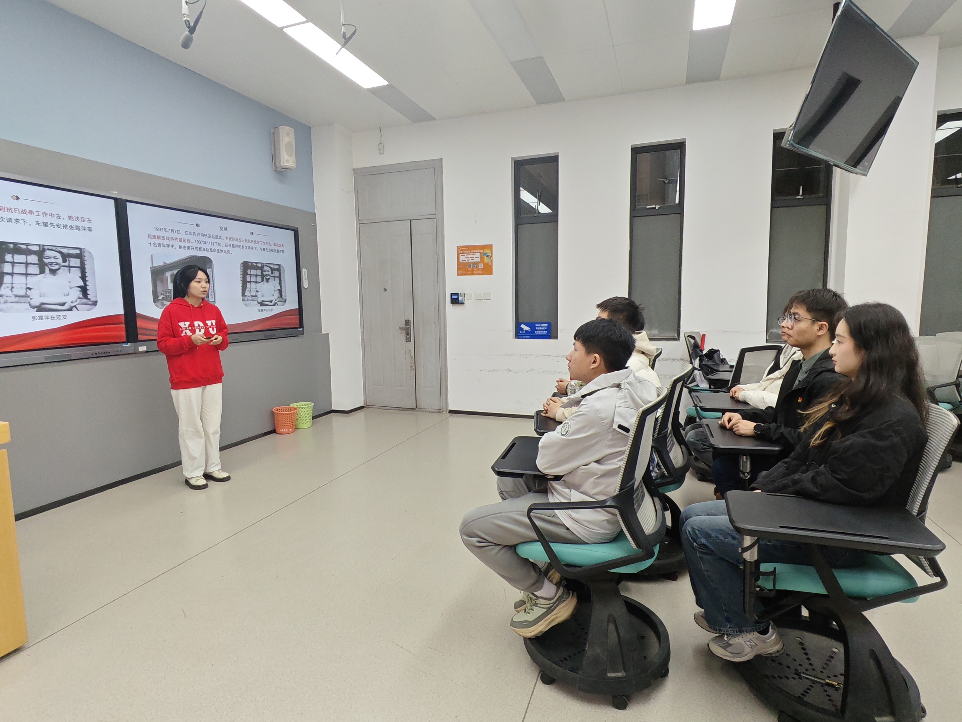 出发前,同学们齐聚南校区C117教室,马克思主义公司“青”声“习”语研究生宣讲团成员王亚萍、何静面向太阳成tyc122cc集团员工党员开展“场馆里的思政课”主题宣讲,以巾帼英雄张露萍生平为主线,讲述了这位女共产党员的生平和她保护党内情报机密,不畏强暴、英勇就义的先进事迹,宣讲中,两位宣讲团成员通过配音表演再现张露萍狱中坚贞不屈的场景,对西安“八办”精神进行了系统而深刻的讲解,同学们对中国人民打赢抗日战争的坚定决心和不畏艰险的顽强意志有了更深刻的理解。
