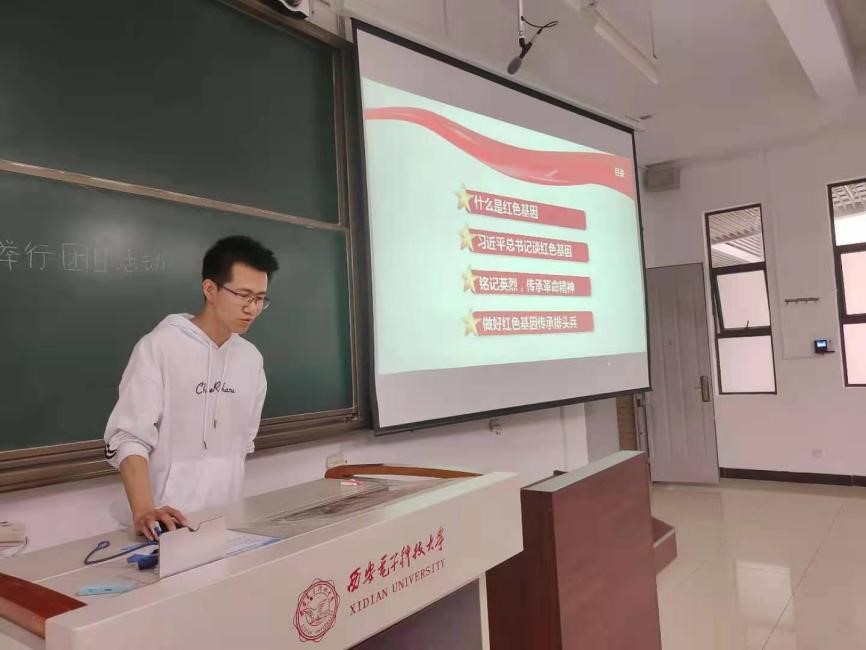第二个环节,组织委员张亚宁围绕“认真学习党史,传承红色基因”主题进行宣讲,用生动的语言和洪亮的嗓音讲解了什么是“红色基因”,他谈到,红色是中国共产党最鲜明的政治底色,红色基因是根植我们党的肌体、流淌在共产党员血脉中的遗传因子,是中华民族共存共荣的精神族谱,是实现中华民族伟大复兴的核心政治优势。他号召大家要铭记革命先烈,并讲述了“江姐”的英雄故事,并推荐了当是学习教育读物,供团员们课后学习。