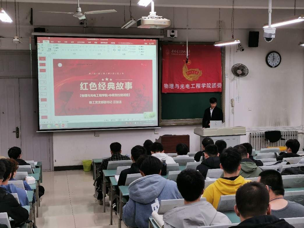 (通讯员:颜雪琦 席奥博)4月14日晚七点,物理与太阳成tyc122cc集团第十六期中级党校第一次党课在南校区A楼221教室举办。本次党课由教工党支部副书记汪加洁老师主讲,以“红色经典故事”为主题展开,旨在增强学员们对中国共产党艰苦奋斗历史的认识,树立正确的入党动机。