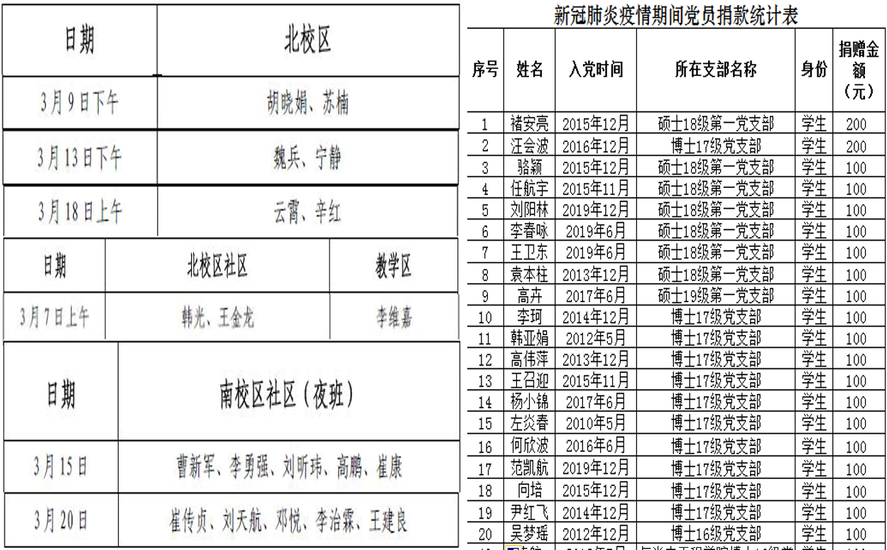 教师党员志愿参加疫情防控工作 研究生党员疫情期间捐款情况