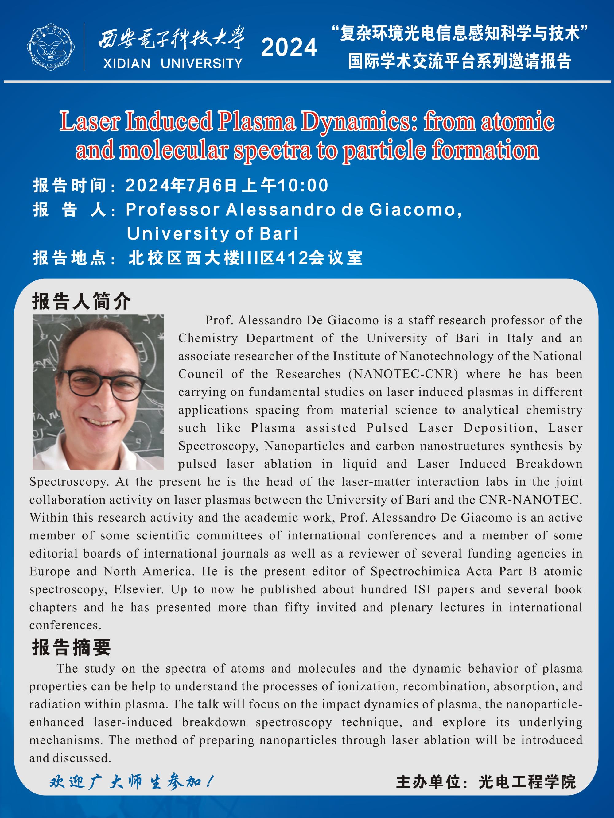 报告人:Professor Alessandro De Giacomo