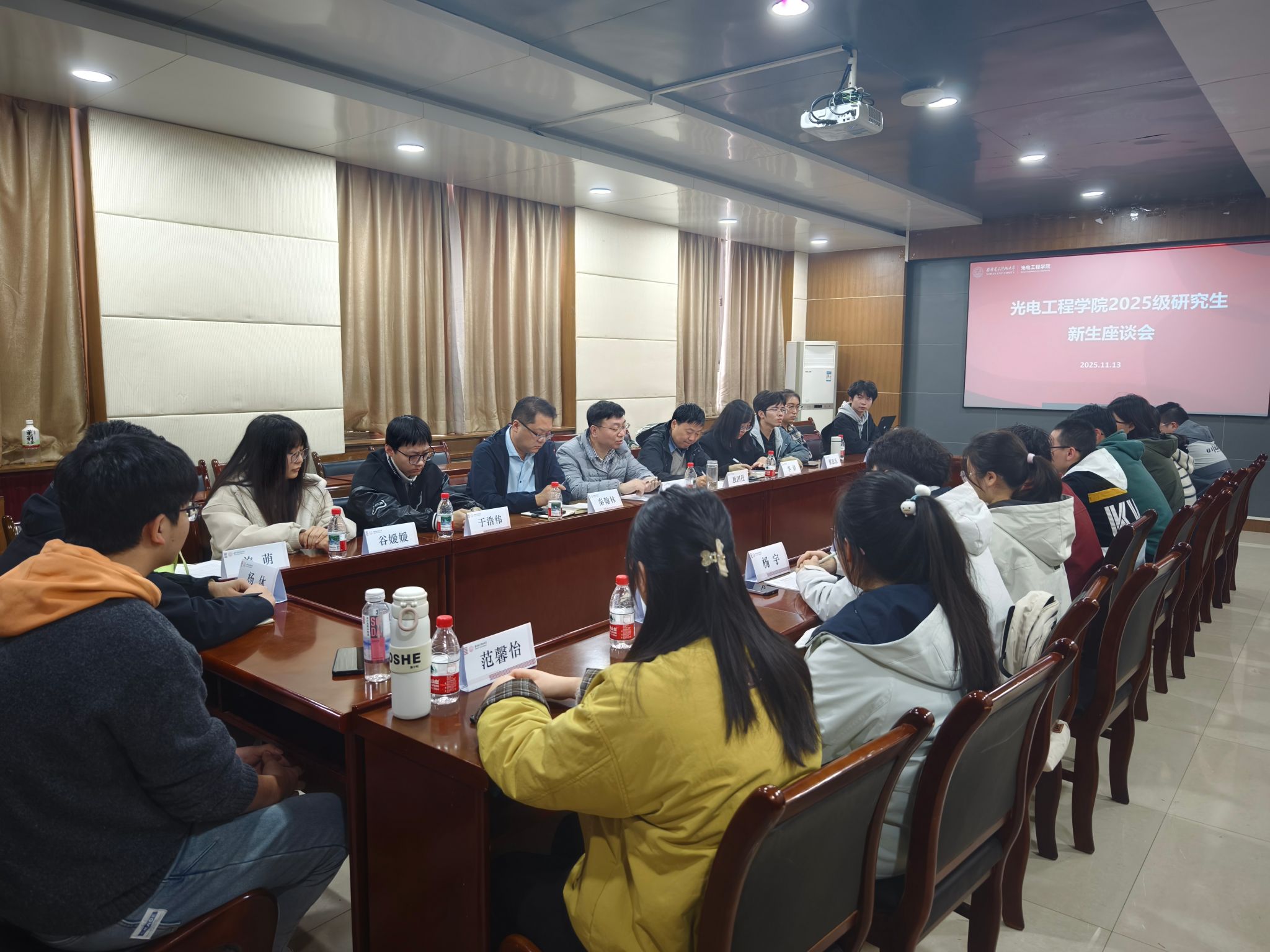 (通讯员:姜萌、兰语博)为深入了解研究生新生的思想动态与成长需求,帮助同学们尽快融入校园生活、明确学业方向,11月13日下午,公司在北校区西大楼三区412会议室举办2025级研究生新生代表座谈会。公司党委书记独国社、经理徐淮良、领导班子成员、辅导员及17名非本校生源新生代表参加座谈交流,会议由公司党委副书记李洁主持。座谈会上,同学们依次发言,分享了自己的成长经历、本科专业背景及科研兴趣方向,畅谈入学以来在学习节奏、...