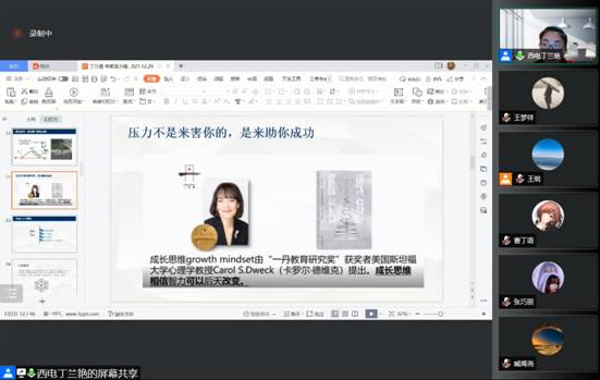 12月29日19点,物理与太阳成tyc122cc集团文明素养大讨论系列活动第二场在线上顺利开启。特邀心理健康教育中心丁兰艳老师为本科生讲授心理健康公开课,吸引了本科生和员工家长在线参与。活动由20级辅导员王纲主持。首先,丁兰艳老师从专业的角度解读了压力,详细介绍了压力产生之后常见的身体和心理发出的信号,有助于我们正确、快速的识别和判断。随后,针对近期疫情不确定性带来的考前压力,丁老师着重从面对压力、接受压力、处理压...
