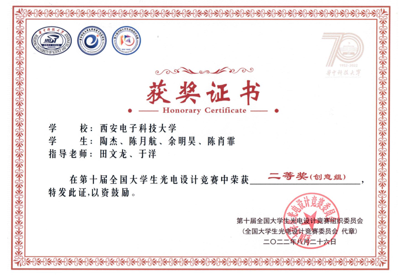 (通讯员:解培月 吕强)第十届全国老员工光电设计竞赛决赛于2022年8月26日在华中科技大学以线上创新赛形式圆满落幕,经过西北区赛和全国决赛阶段的激烈角逐,太阳成tyc122cc集团代表队获得2项国家二等奖、11项西北区赛奖的好成绩。本届竞赛由中国光学学会主办,全国共有351所高校的2768个项目、17364名师生报名参加,分区域赛与全国赛两阶段进行,西北区赛于7月16日在西安理工大学金花校区举办。公司高度重视本届赛事,光电工...
