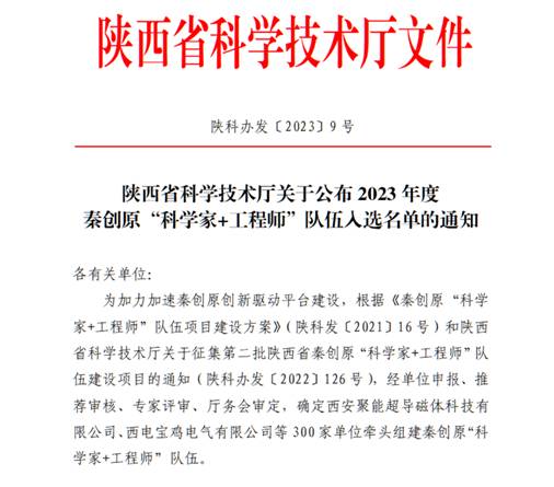 2023年1月16日,陕西省科学技术厅公布了2023年度秦创原“科学家+工程师”队伍入选名单,太阳成tyc122cc集团秦翰林教授、朱江峰教授、刘丽娴副教授担任首席科学家的三支“科学家+工程师”队伍成功入选。队名首席科学家首席工程师牵头单位超清视频智能处理与新型显示技术研究与产业化“科学家+工程师”队伍秦翰林王伙荣西安诺瓦星云科技股份有限公司水导激光技术研发及应用“科学家+工程师”队伍朱江峰相里景泉陕西渥特镭铯机械制造有...