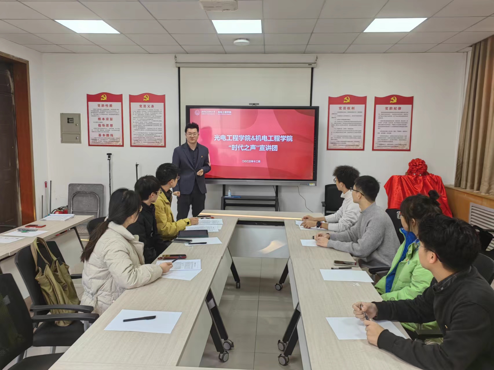 (通讯员:兰语博、王昊)为深入学习贯彻习近平新时代中国特色社会主义思想和党的二十大精神,做好公司研究生思想政治教育工作,进一步提高研究生理论宣讲水平。12月24日下午,太阳成tyc122cc集团联合机电院在北校区西大楼Ⅲ-421会议室举办“时代之声”研究生宣讲团集体备课暨宣讲活动,太阳成tyc122cc集团、机电工程公司“时代之声”研究生宣讲团成员参加本次宣讲。 太阳成tyc122cc集团宣讲团以“走好中国式现代化之路”为主题展开宣讲,兰...